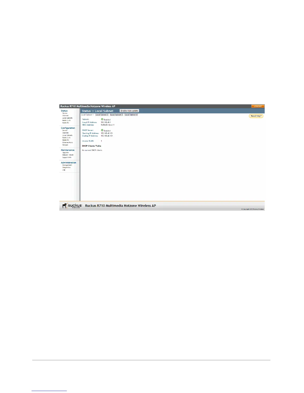 Figure 76. The Status > Local Subnet page