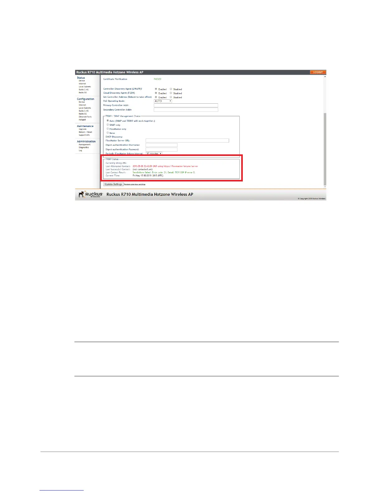 NOTE Instructions on how to verify that the AP and FlexMaster can communicate