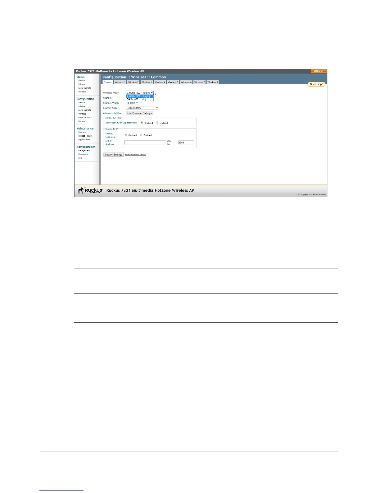 Settings. The Configuration > Wireless > Advanced > Common page appears.