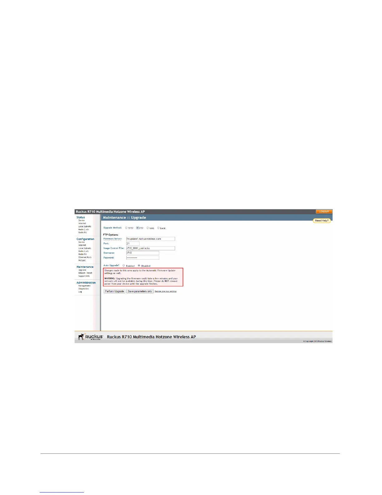 Figure 83. The Maintenance > Upgrade page