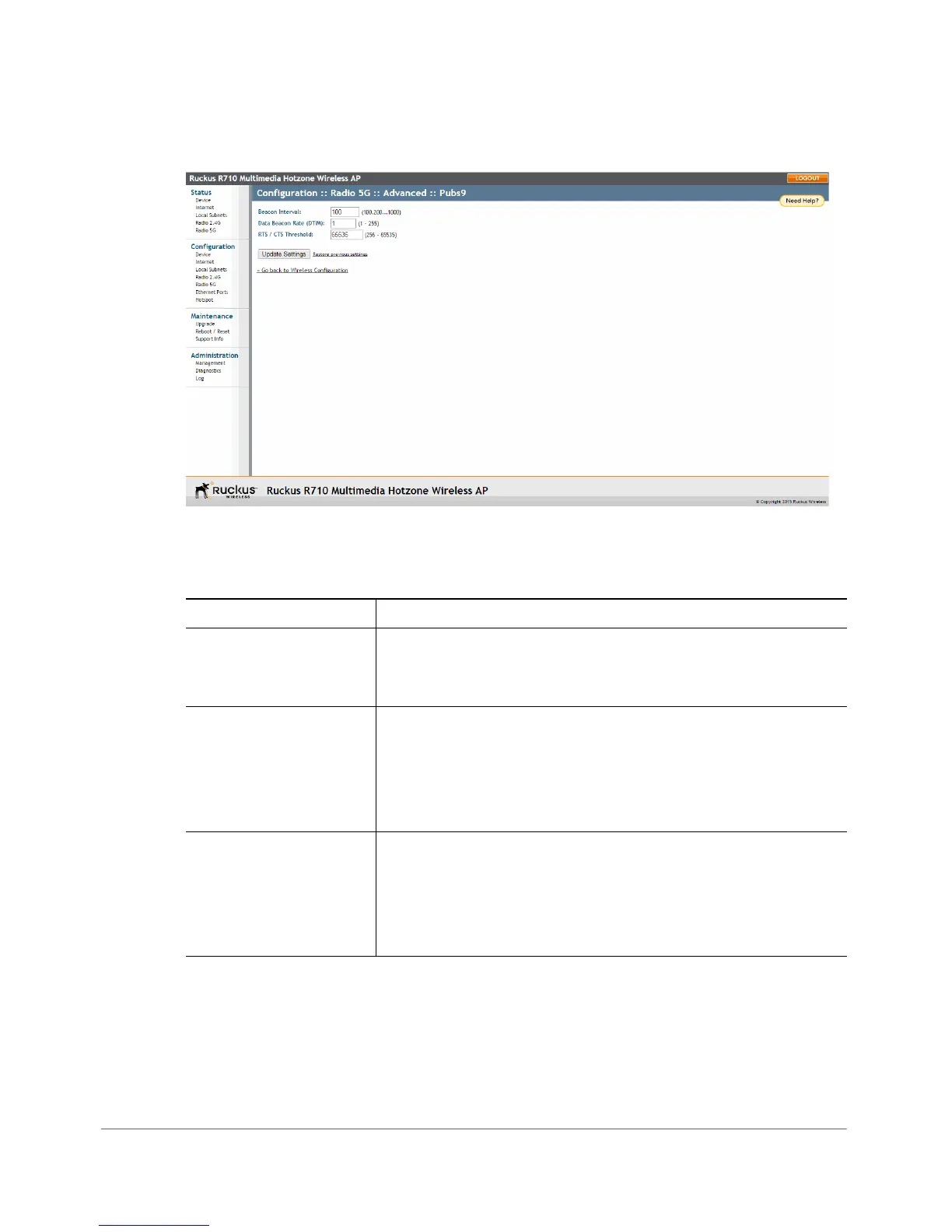 Beacon Interval (The default value is 100.) The value indicates the frequency