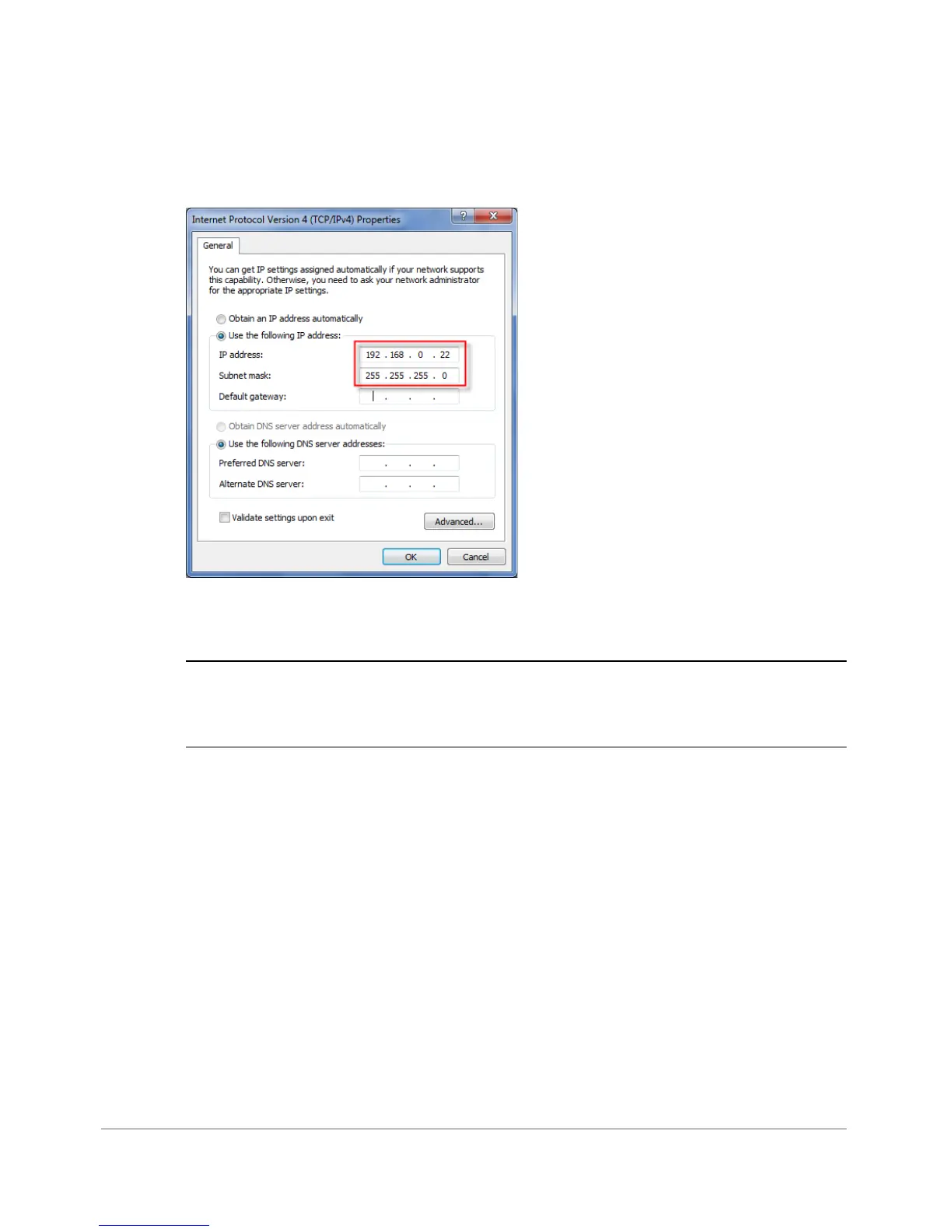 Figure 37. Sample configuration in the Internet Protocol (TCP/IP) Properties dialog box
