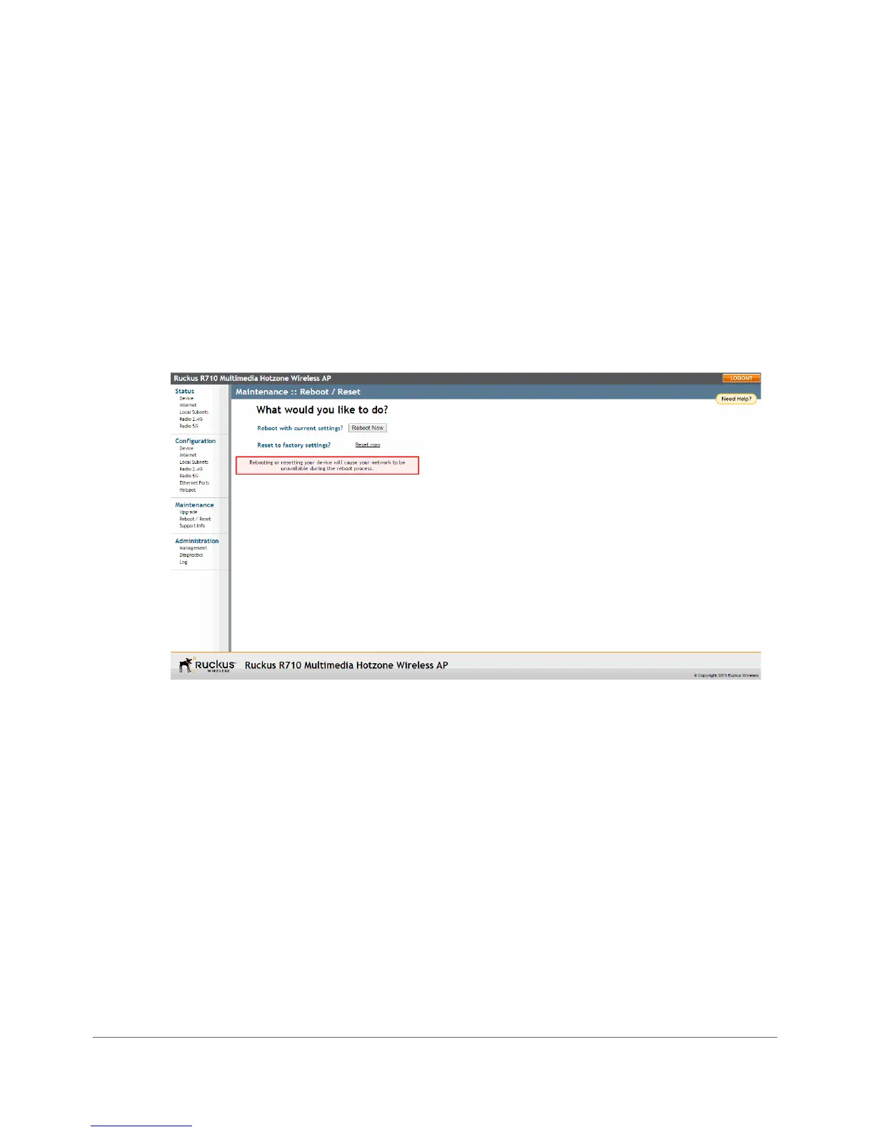 1 Go to Maintenance > Reboot/Reset. The Maintenance > Reboot/Reset page