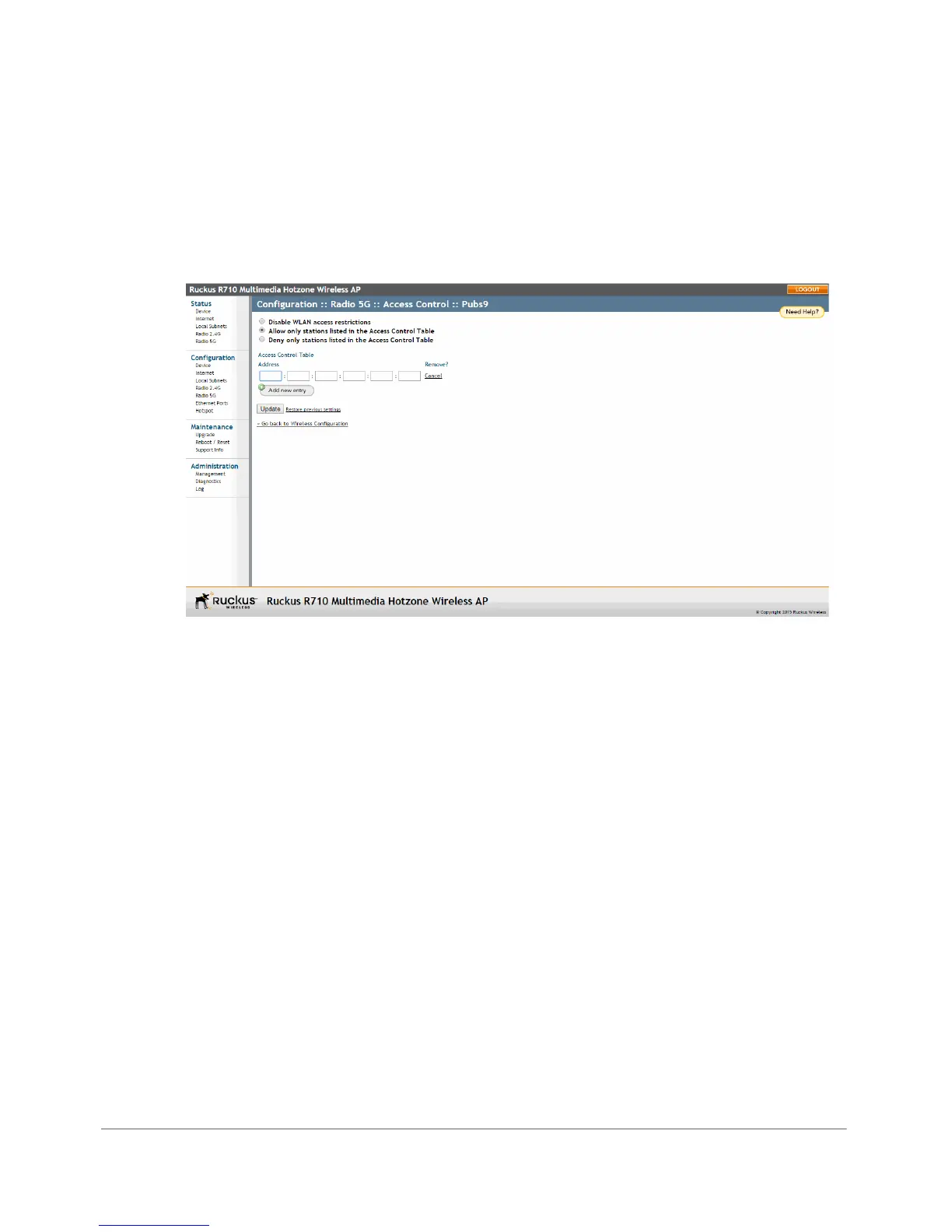 5 To add a MAC address to the Access Control table, click Add new entry.