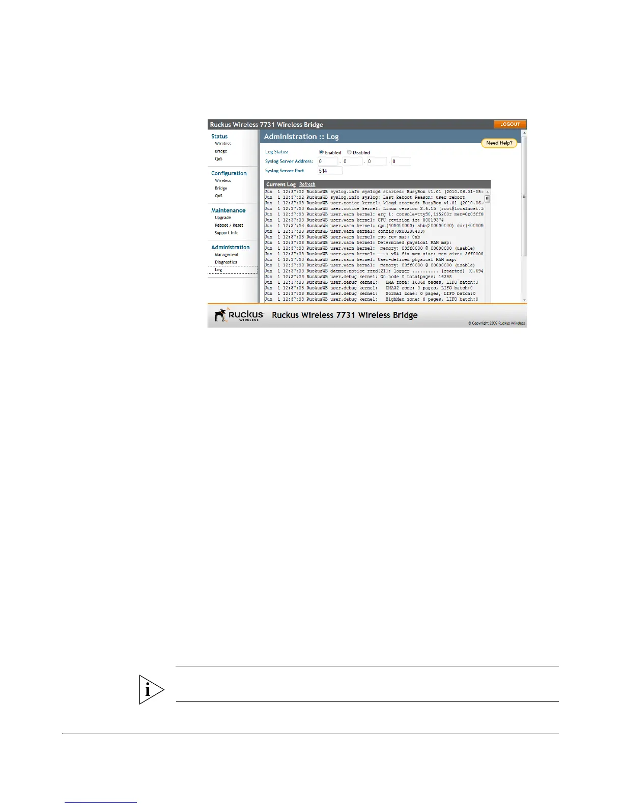 Figure 75. The Administration > Log page