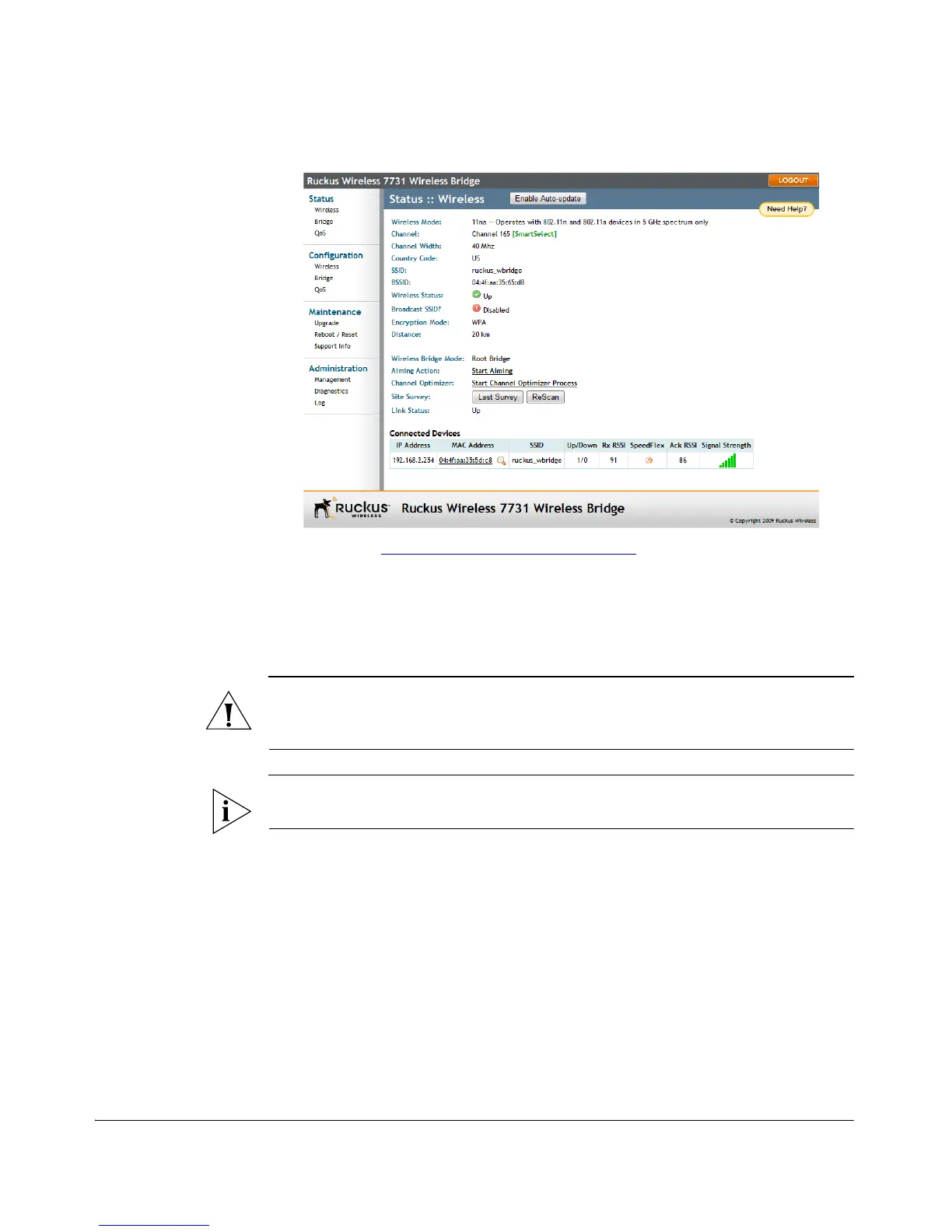Figure 10. Ruckus ZoneFlex 7731 Wireless Bridge Status :: Wireless page