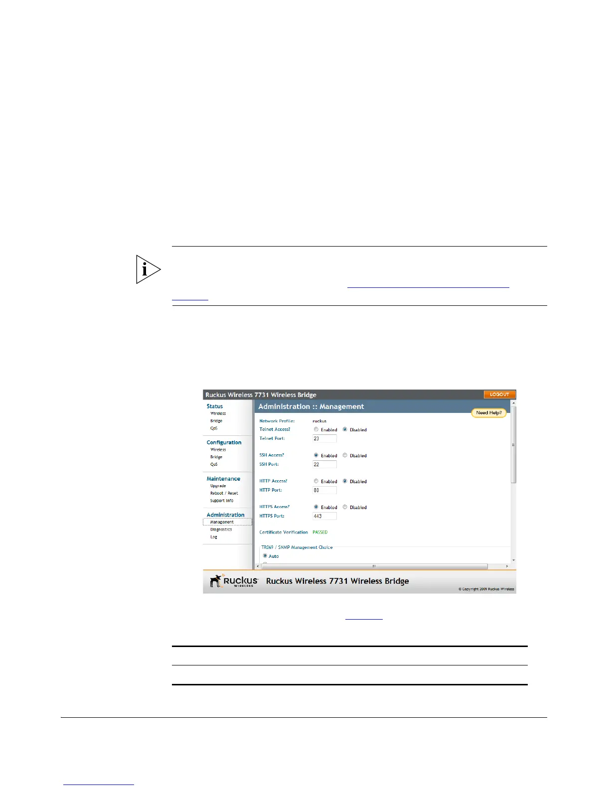 connection to the Ruckus Wireless FlexMaster under the TR-069/SNMP Manage-