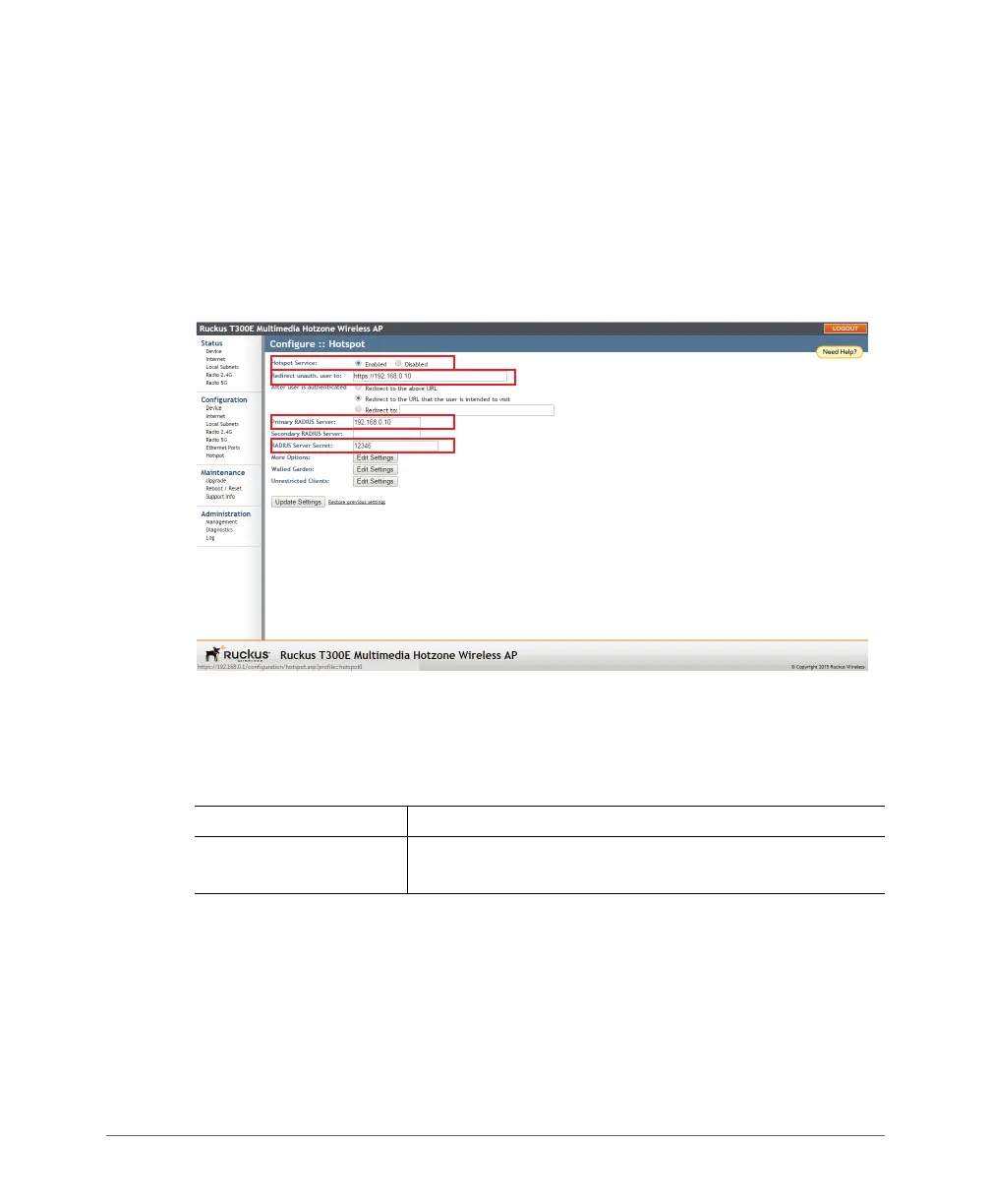 Figure 43. Minimum configuration settings for providing Hotspot service