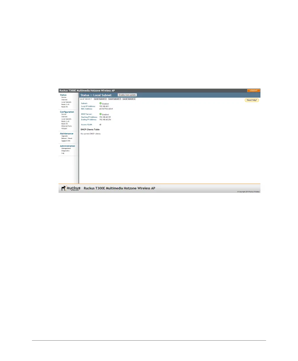 The Status > Local Subnets page can be used to view the router (local subnet)
