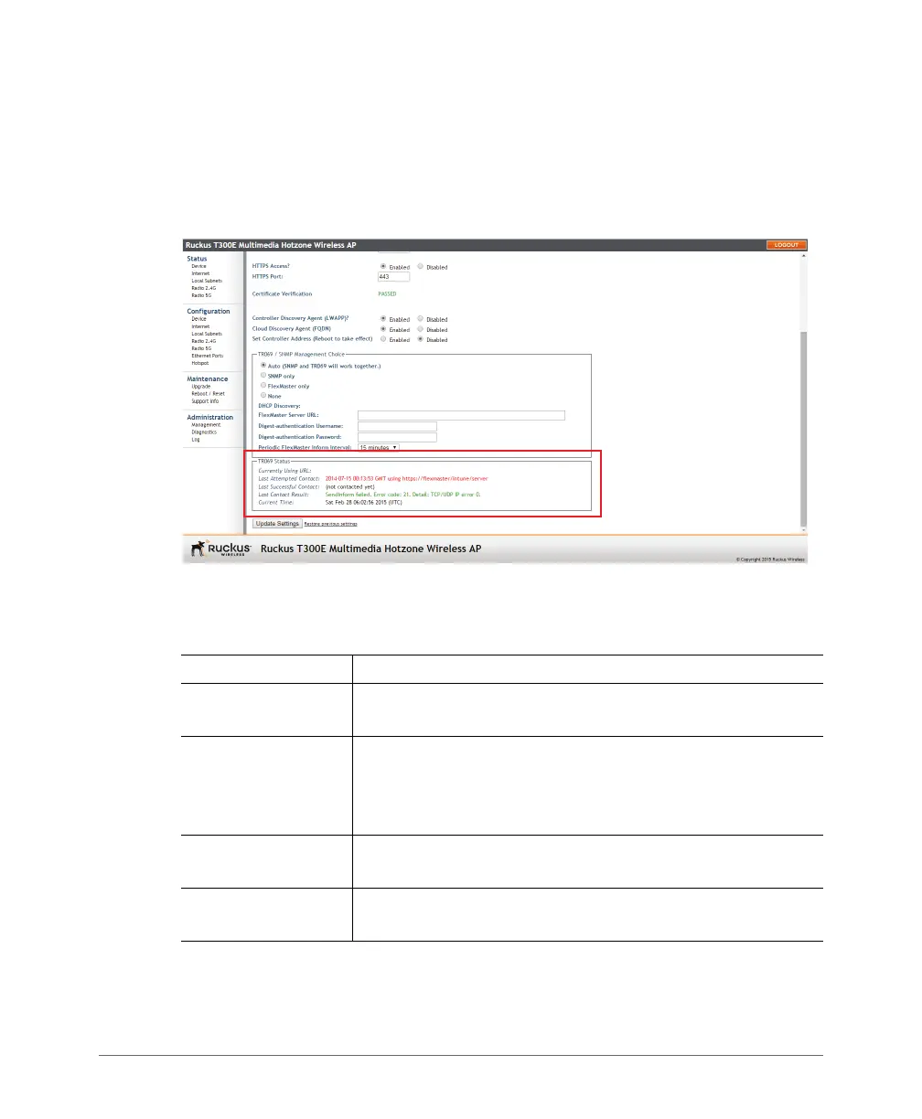 Tab l e 39 lists the TR-069 status information that the AP provides.