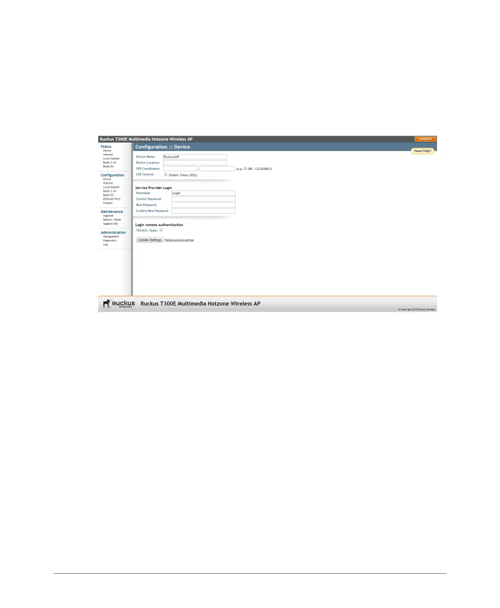 default device name (RuckusAP). The device name identifies this AP among