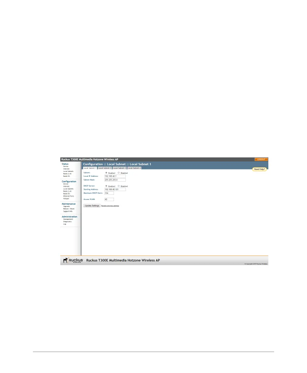 2 Click Enabled next to Subnet. The local subnet configuration options appear.