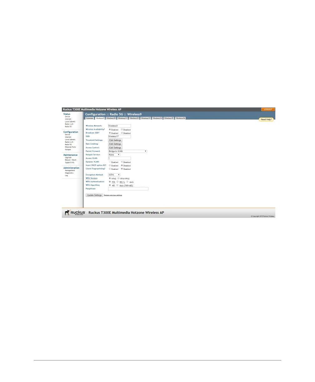 1 Go to Configuration > Wireless/Radio 2.4/Radio 5G. The Configuration >