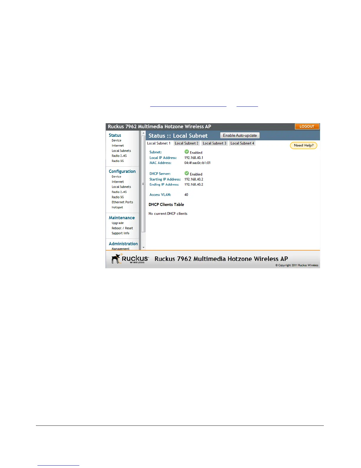 Figure 57. The Status > Local Subnet page