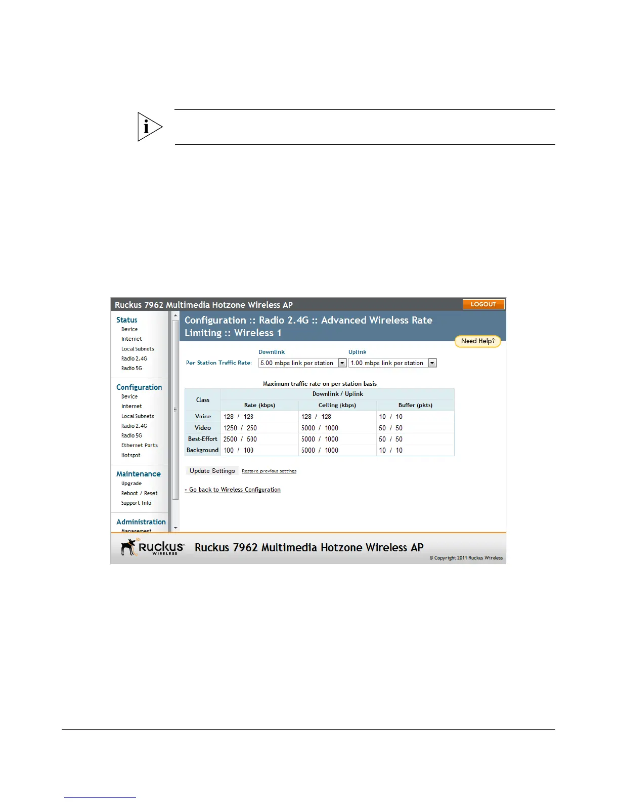 Figure 48. Limit per station traffic rates on a specific WLAN