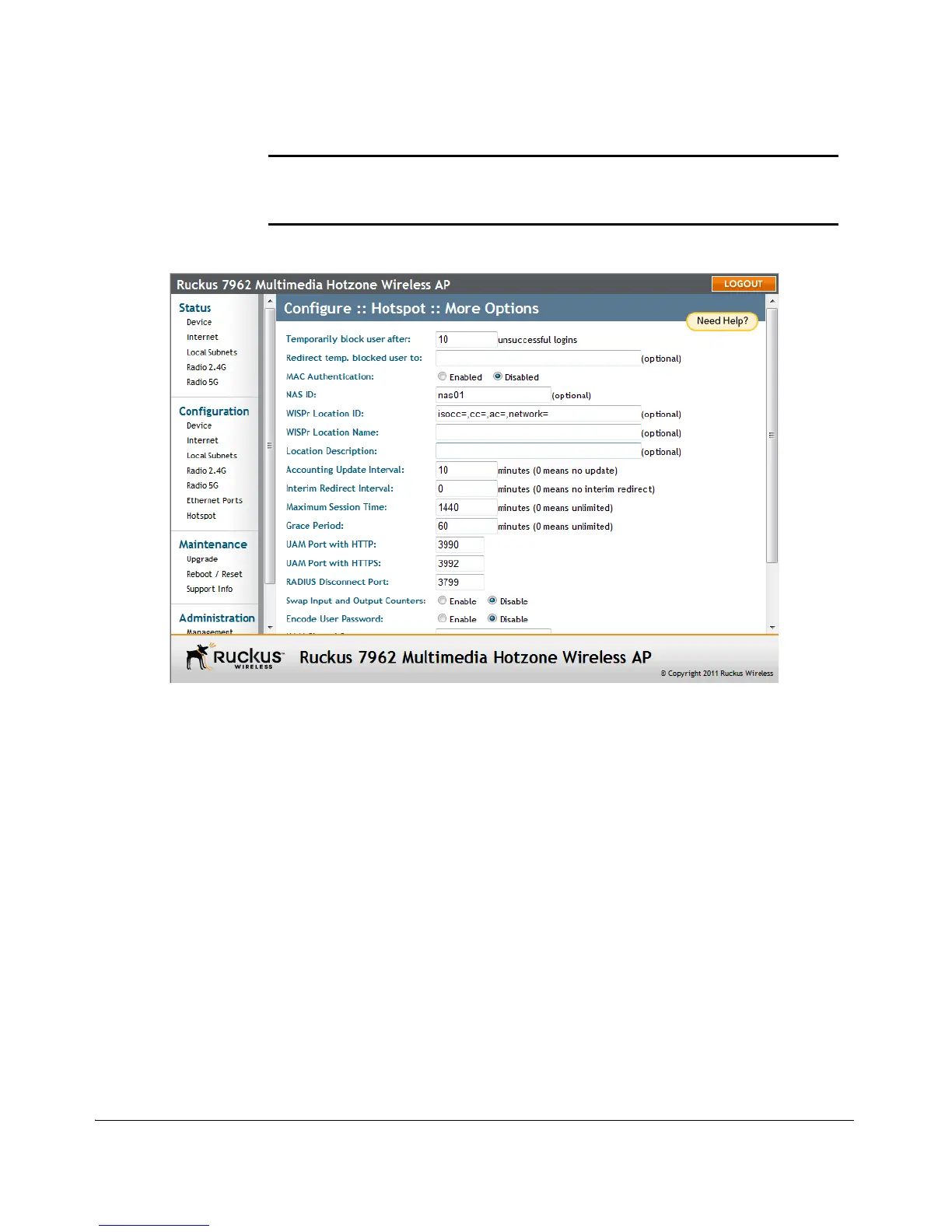 Figure 52. Configuring optional Hotspot options