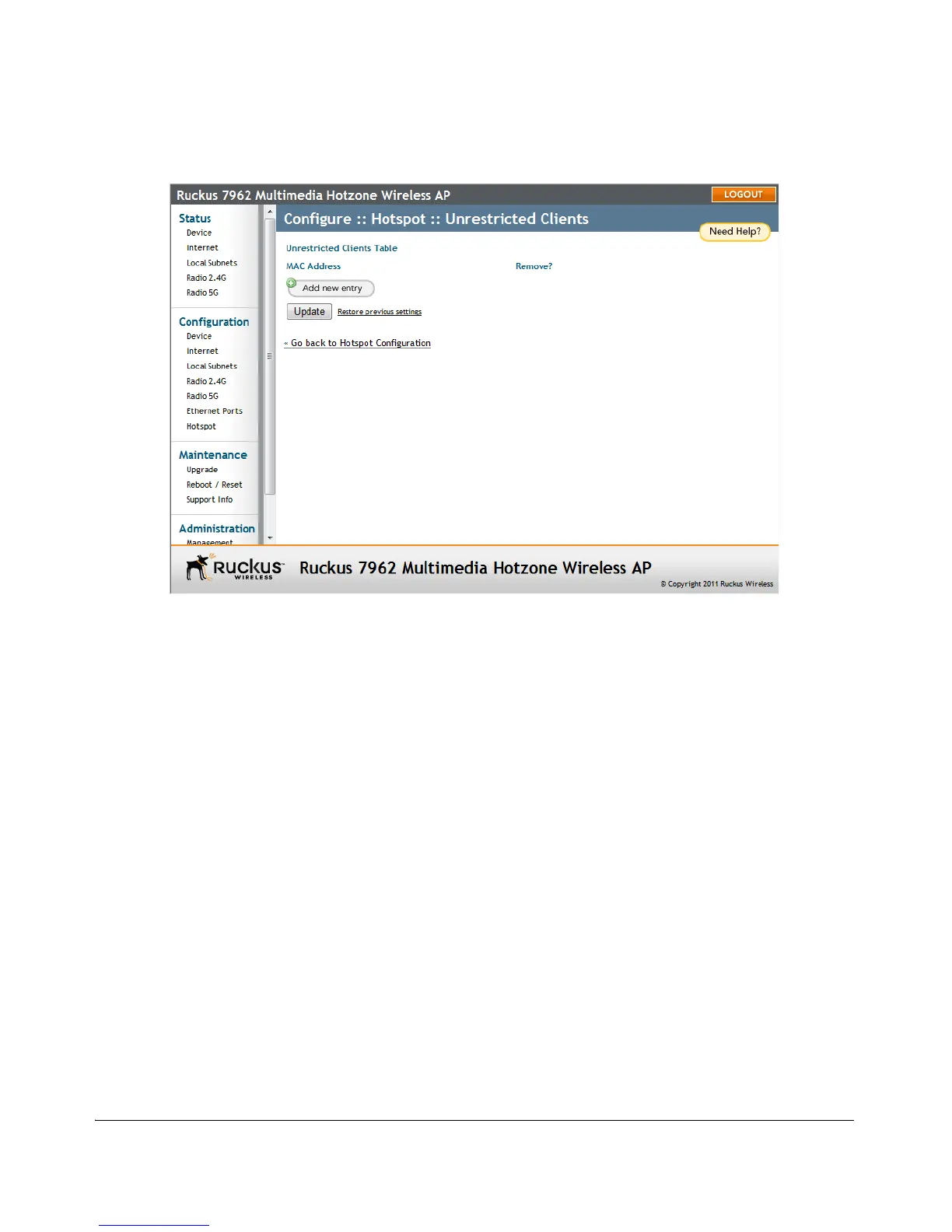 Figure 54. Configuring Hotspot unrestricted clients table