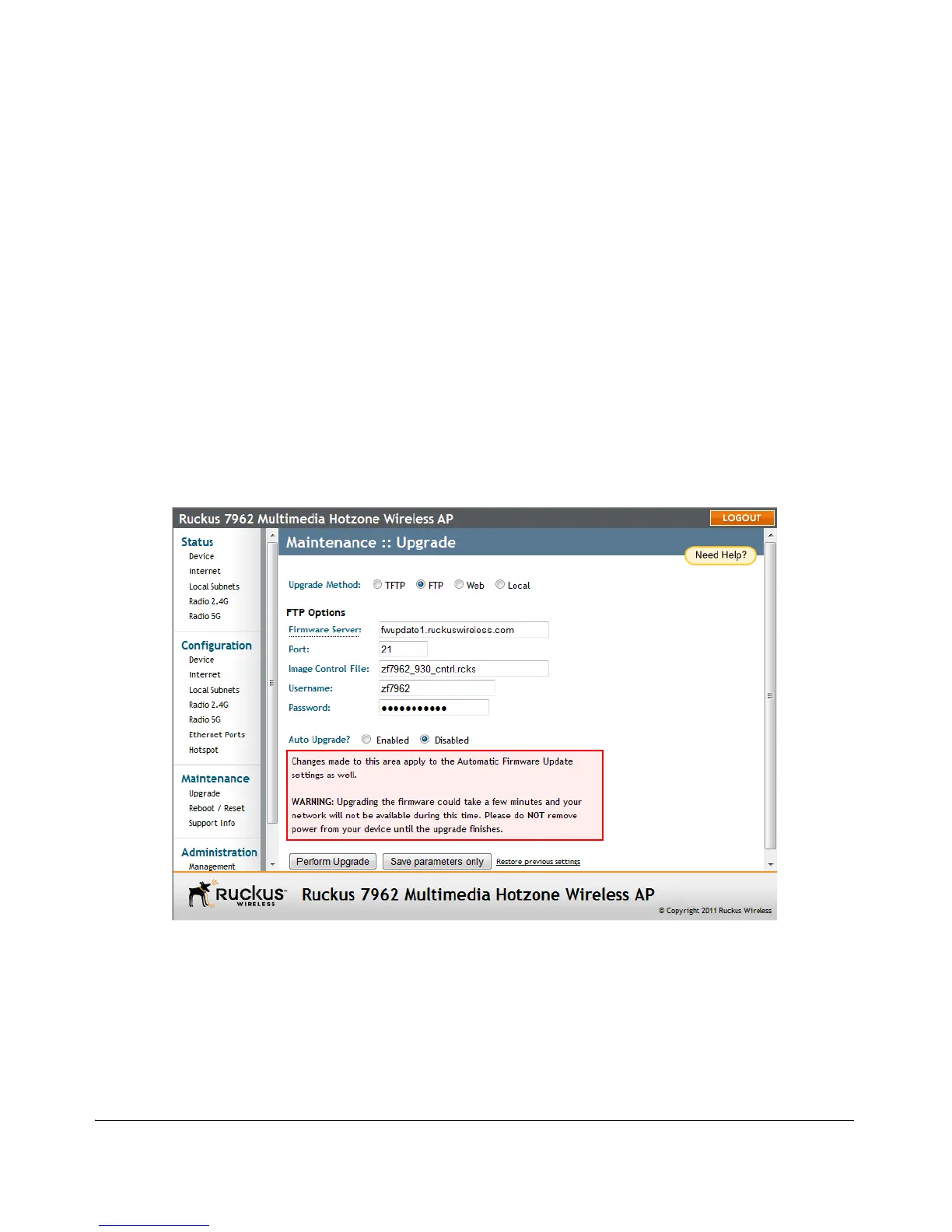 Figure 64. The Maintenance > Upgrade page