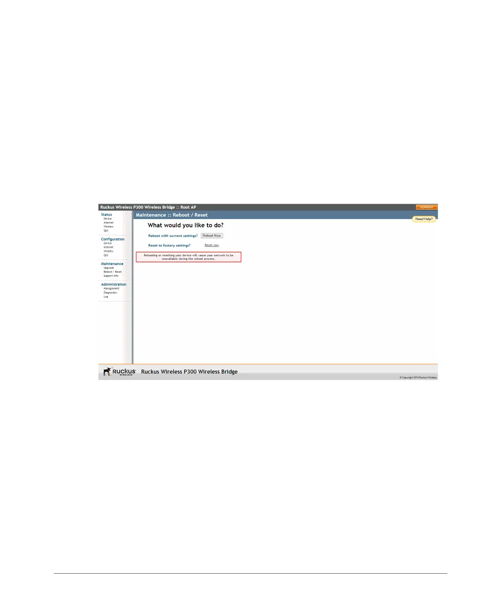 1 Go to Maintenance > Reboot/Reset. The Maintenance > Reboot/Reset page