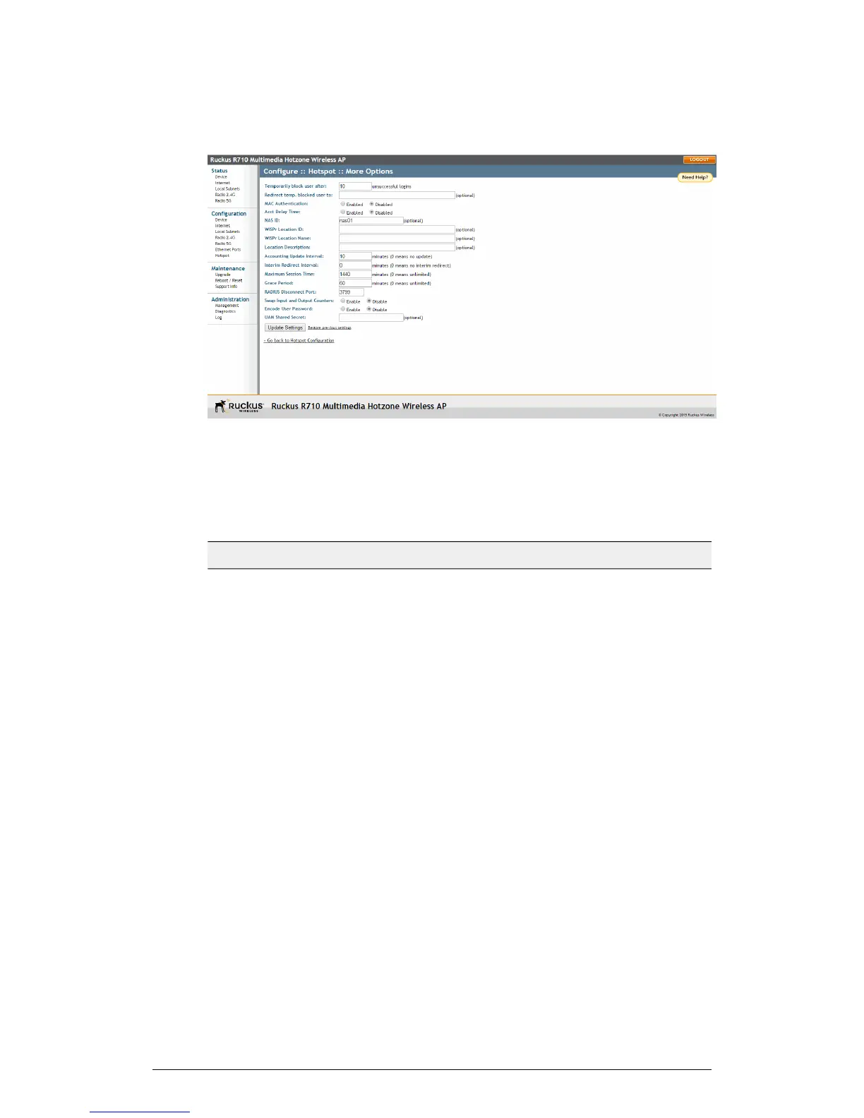 The following Hotspot options can be configured from the Configuration > Hotspot