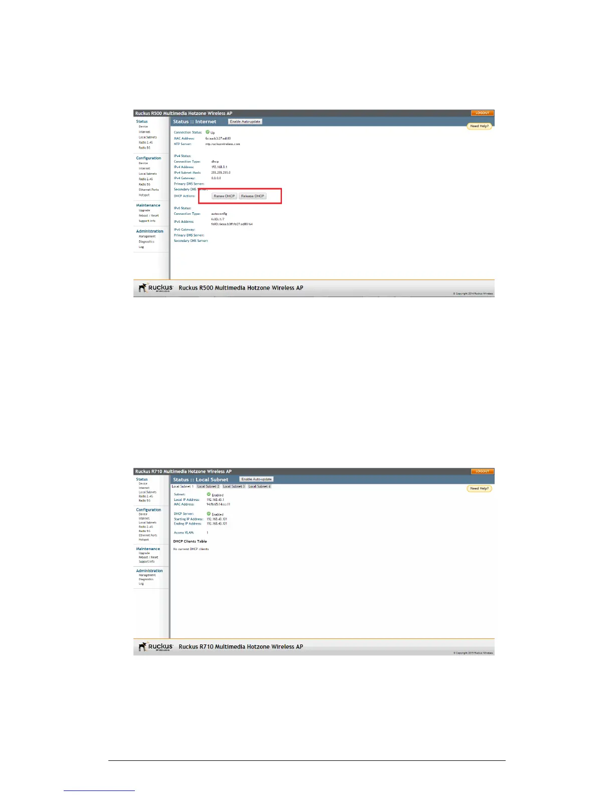 The Status > Local Subnets page can be used to view the router (local subnet)