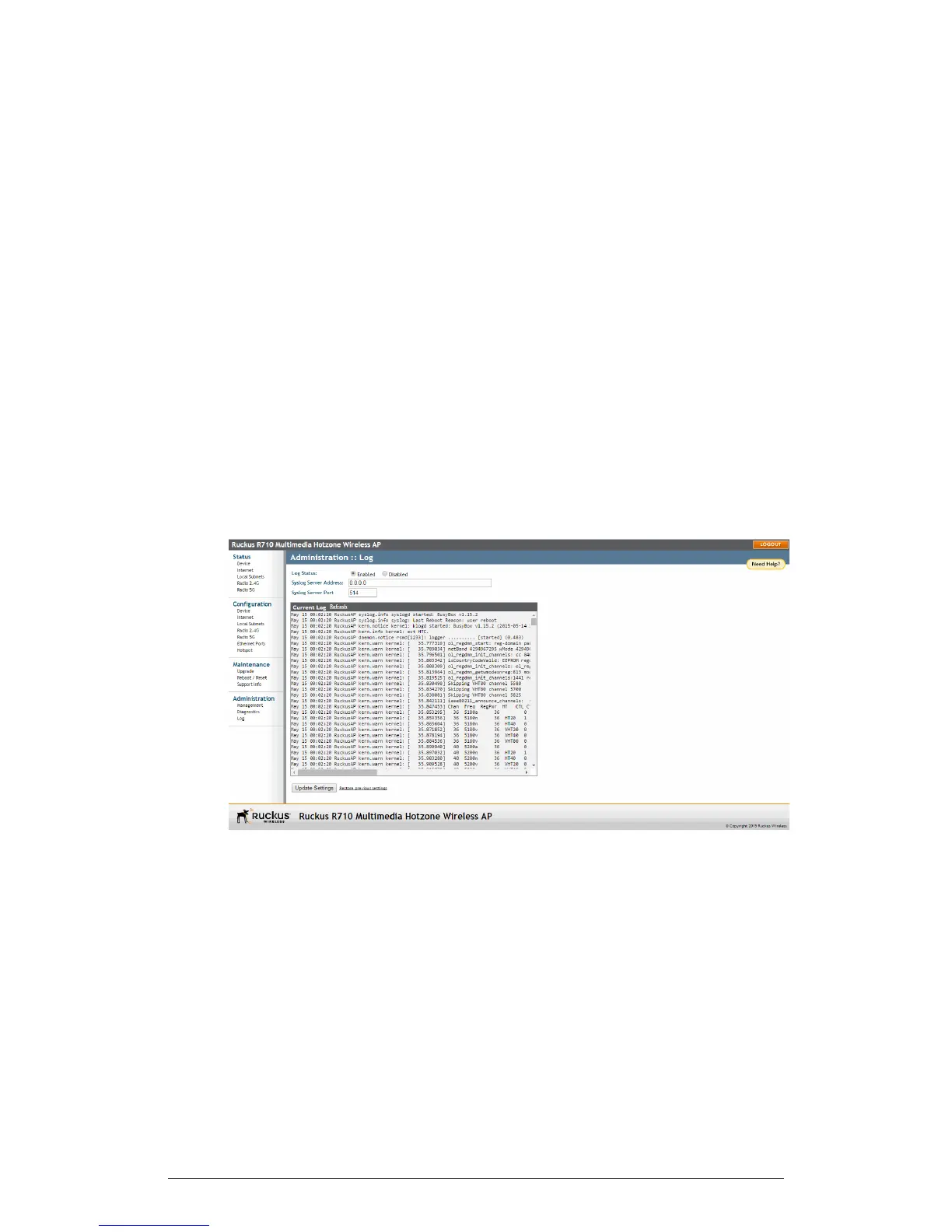 to view the AP's current log file text. You can use the former to send the log to Ruckus