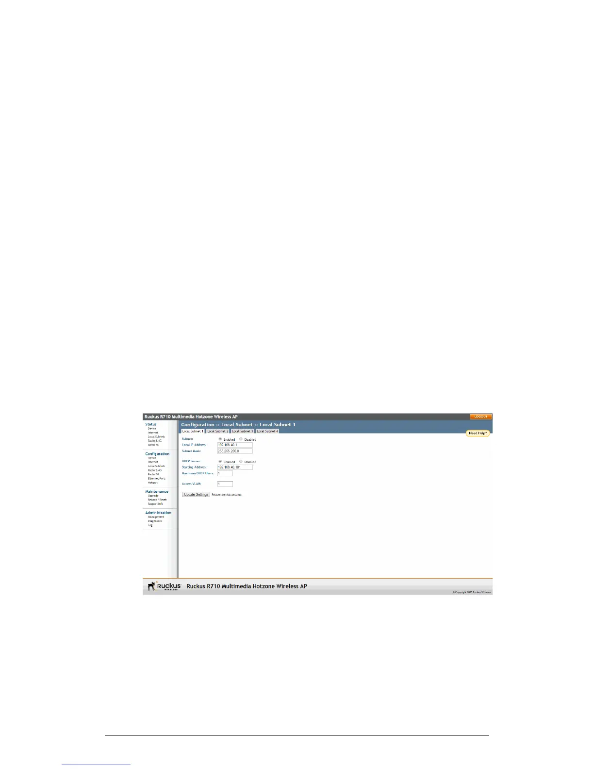 When a Local Subnet is enabled, the standalone AP serves as a gateway router with