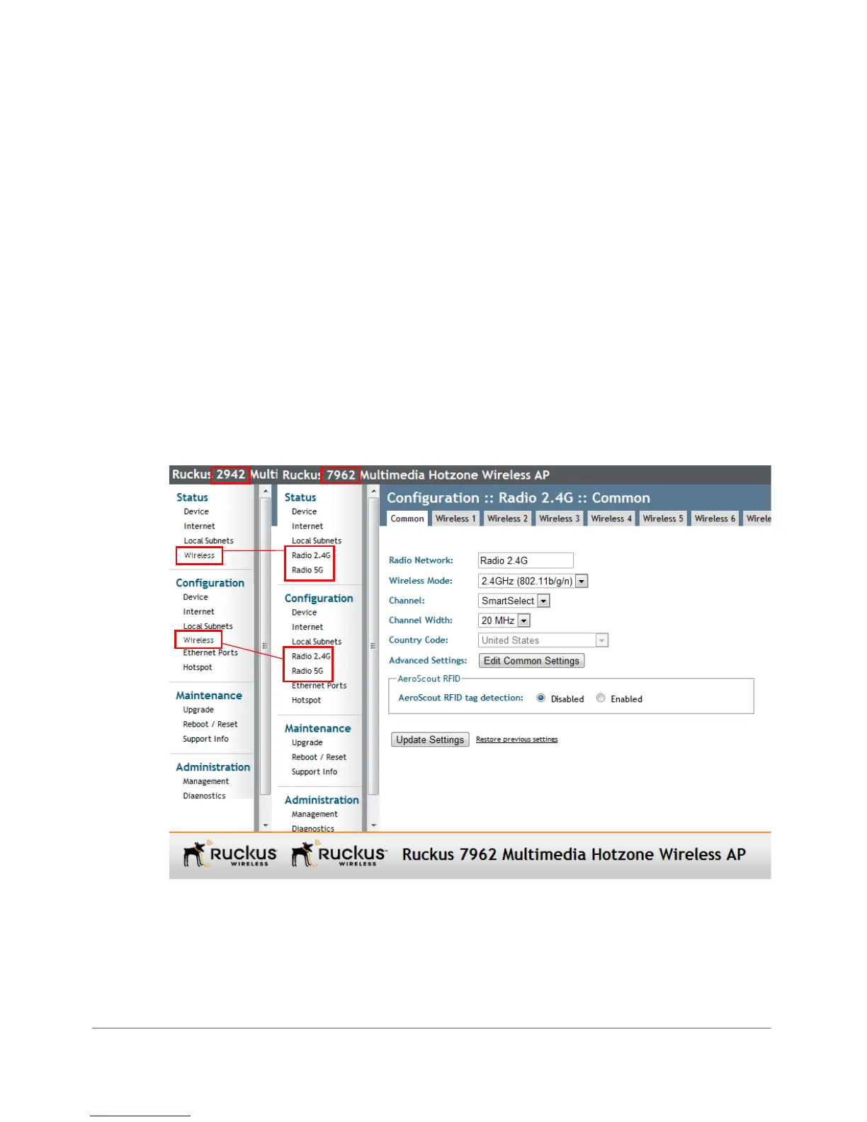 Figure 57. Menu items are slightly different in single band APs (left) and dual band ZoneFlex
