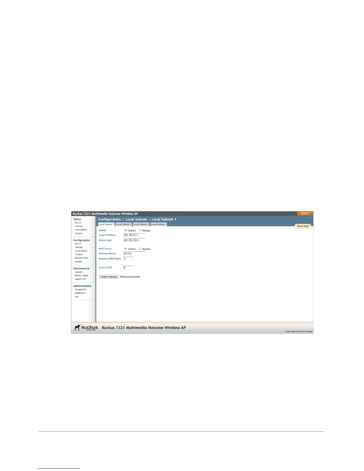 for Subnet 1 is 192.168.40.1. This address can be used to access the AP’s