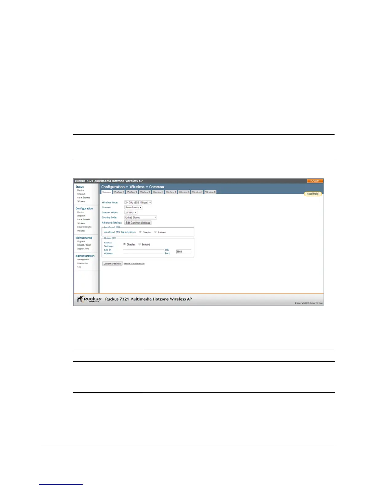 1 Go to Configuration > Wireless. The Configuration > Wireless > Common page