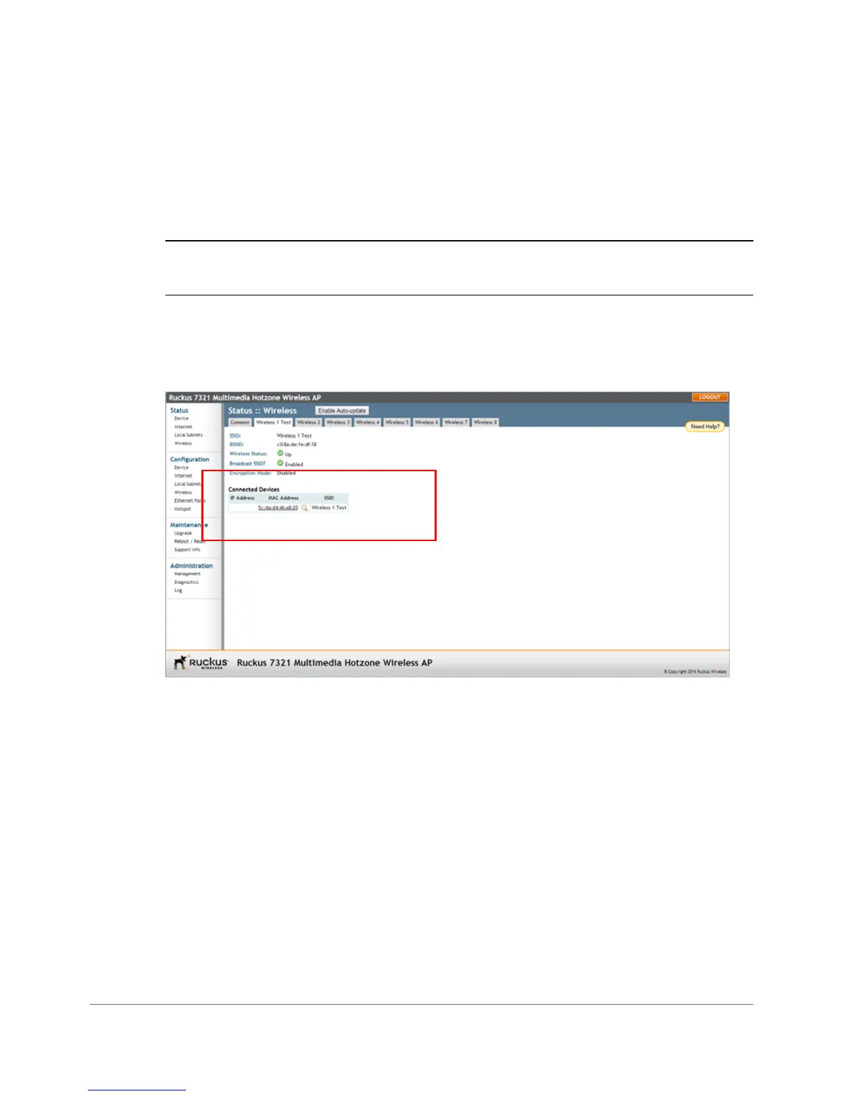 1 Go to Status > Wireless. The Status > Wireless page appears.