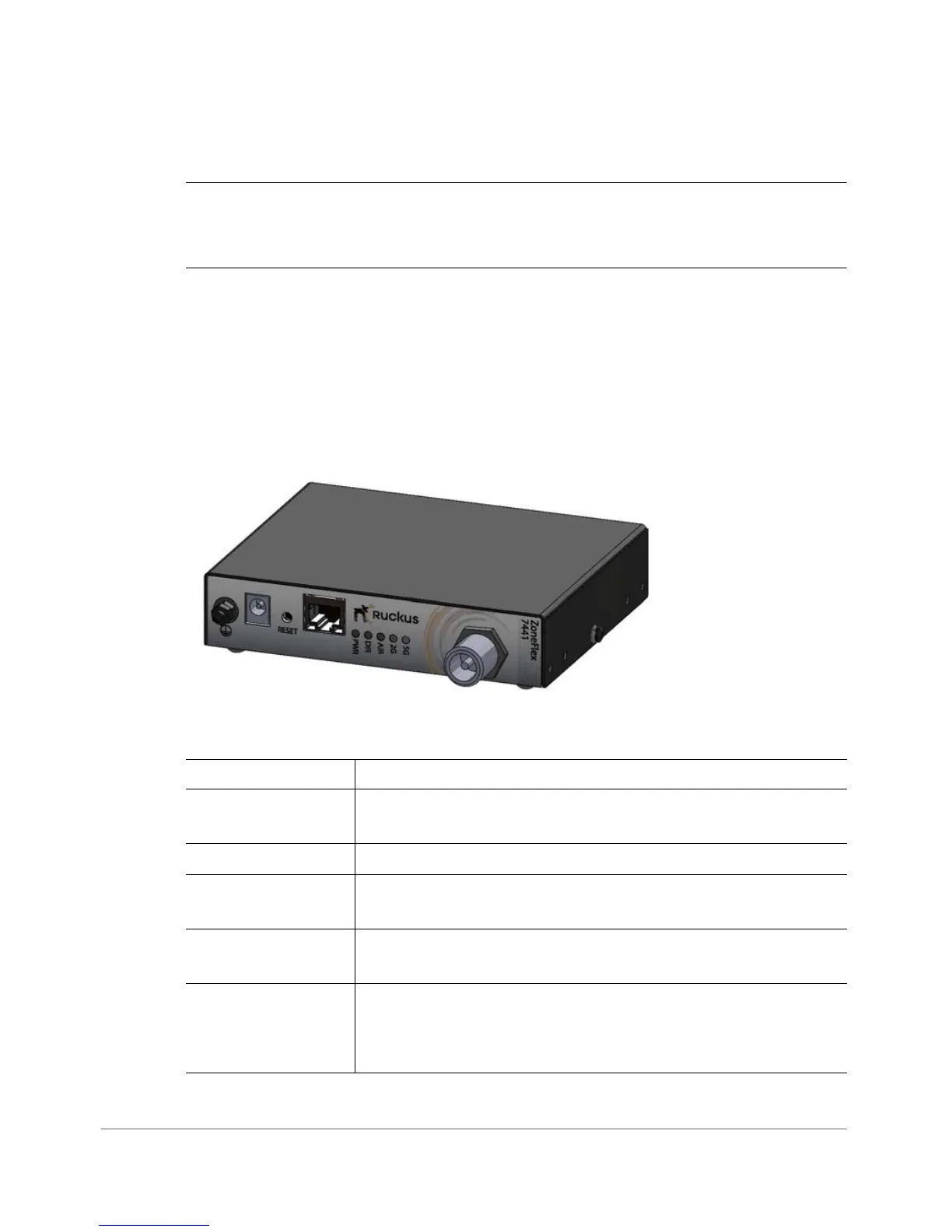 Figure 21 shows the front view of the ZoneFlex 7441. For a description of each front
