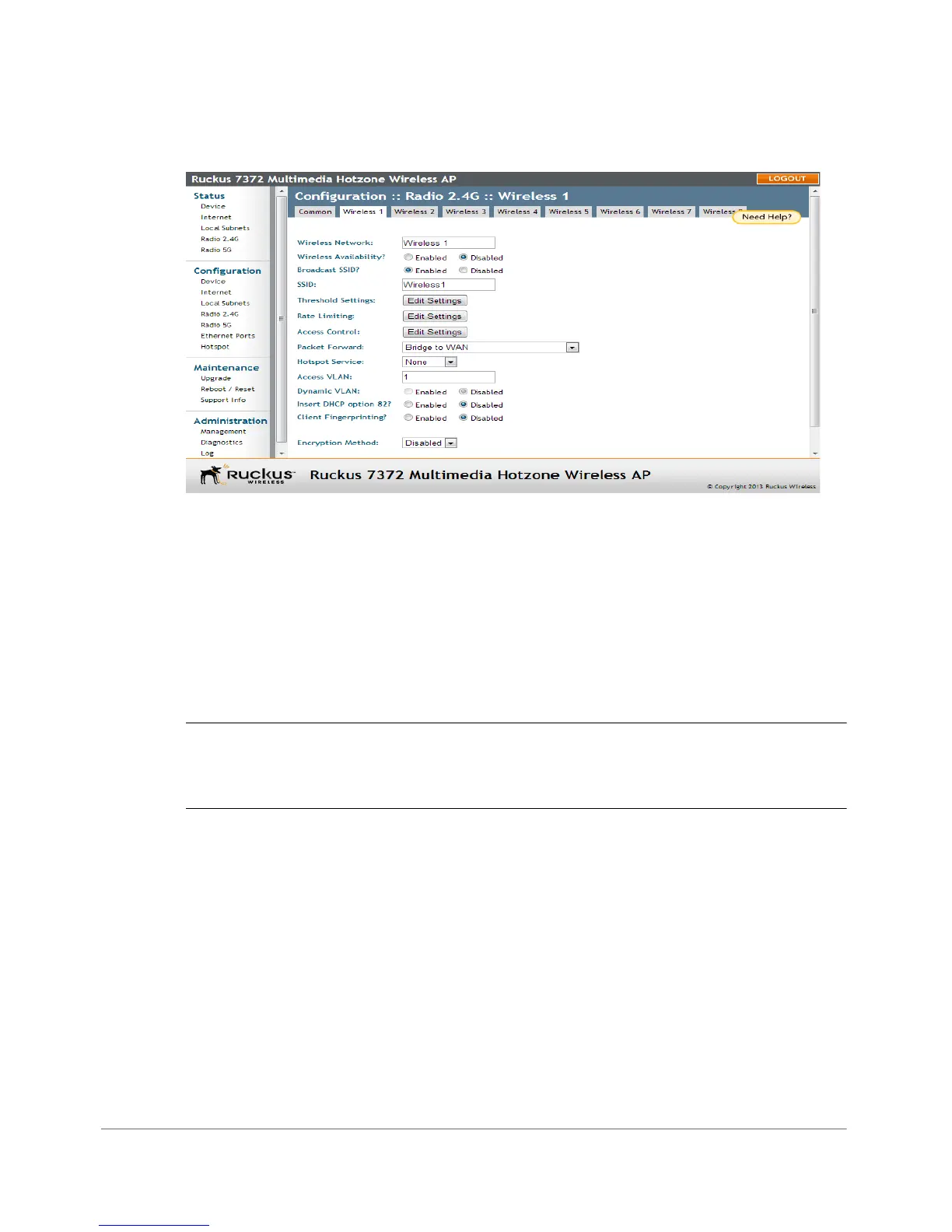Figure 43. The Configuration > Wireless > Wireless 1 tab