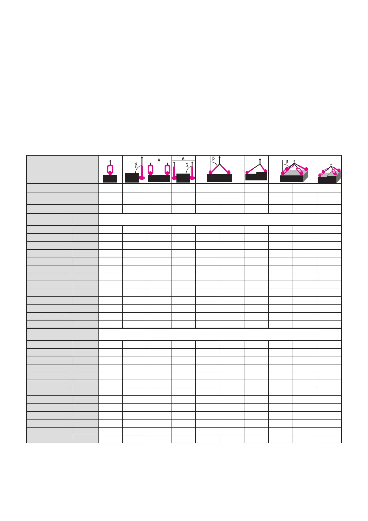 Table 2: WLL in tons (above / top) and in lbs (below / bottom)