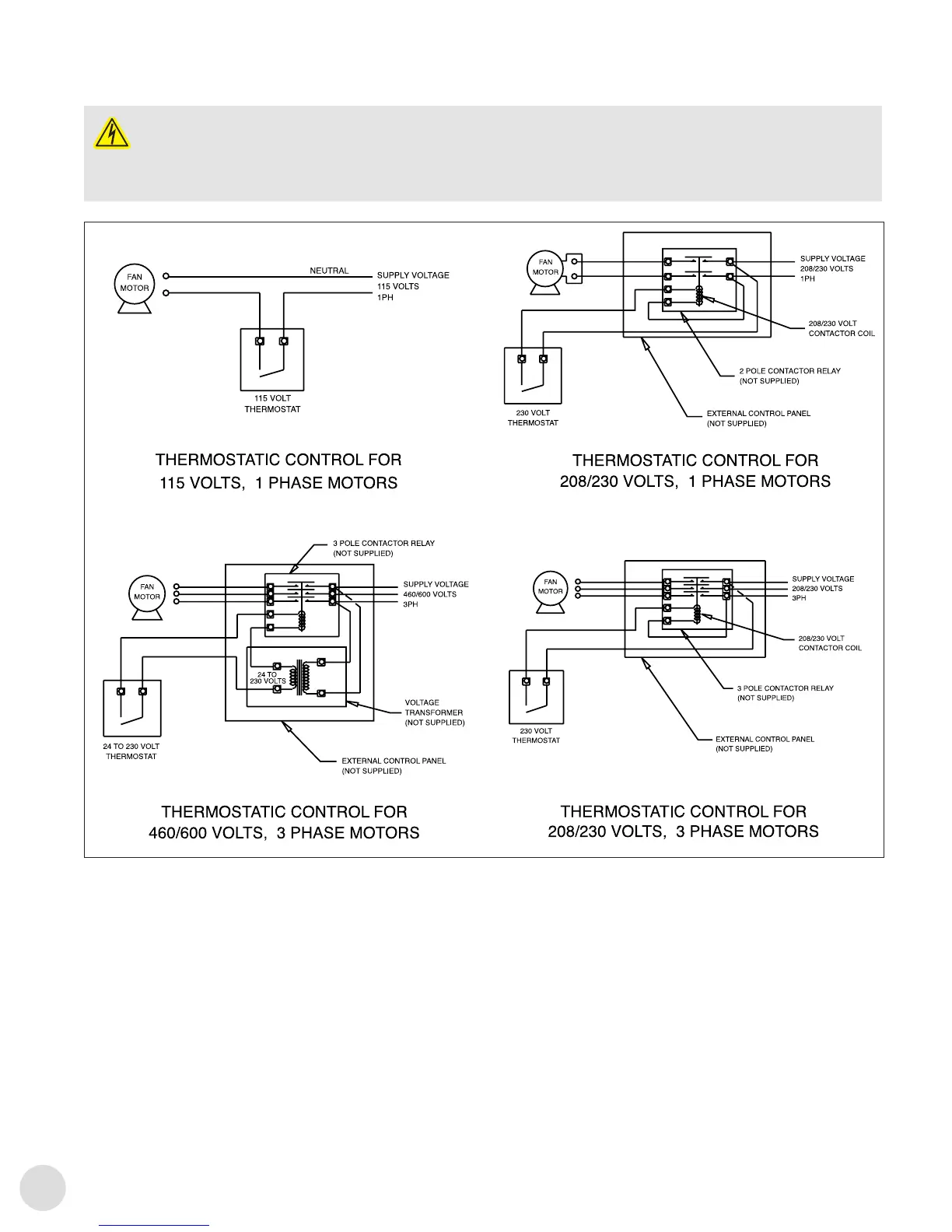 consult device manufacturer. The thermostat must have an electrical rating