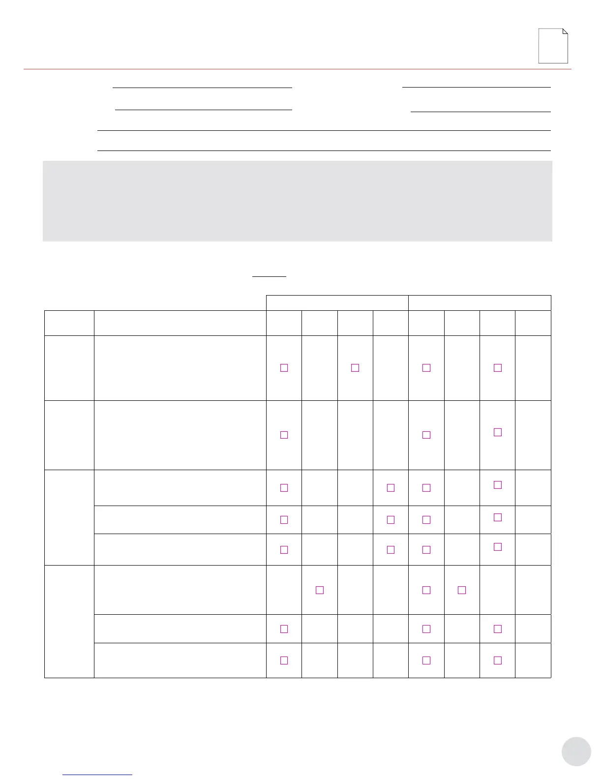 Cells of the grid with check boxes inside are the minimum maintenance measures required to be performed at the