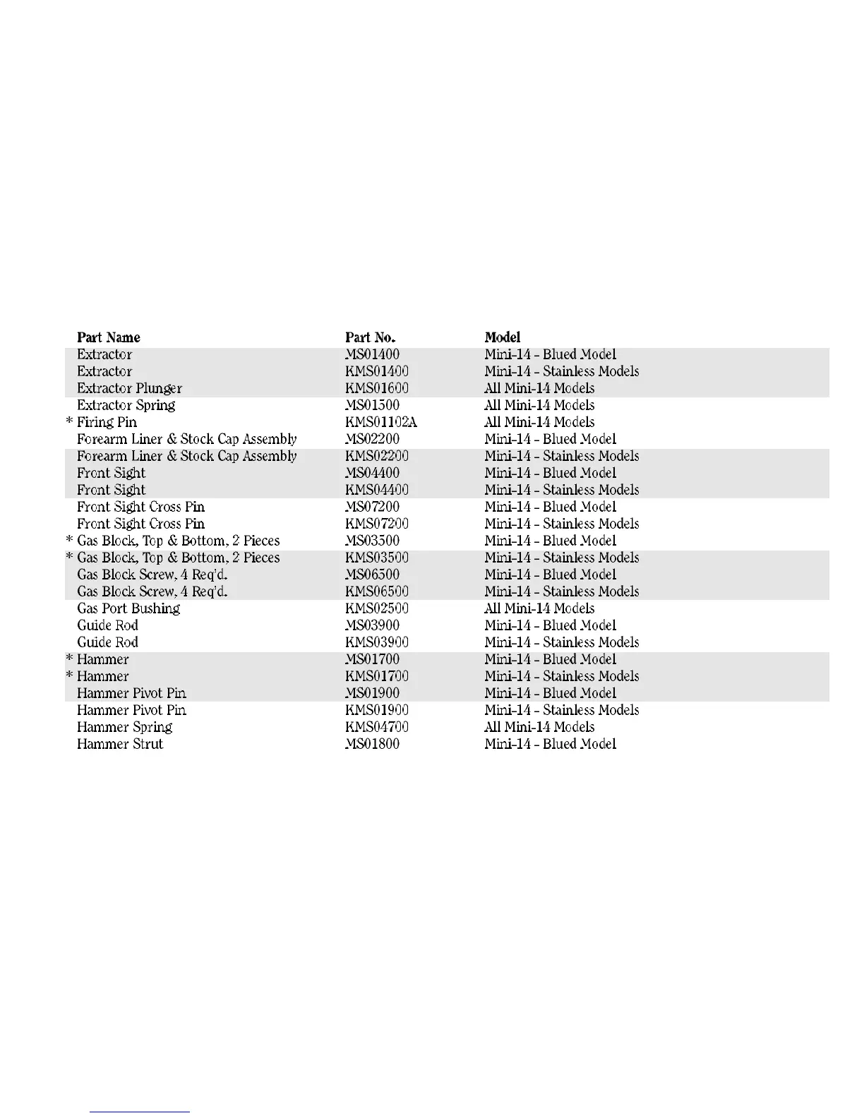 Ruger MINI-14 - RUGER MINI-14 RIFLE PARTS LIST; Parts Identification and Numbers