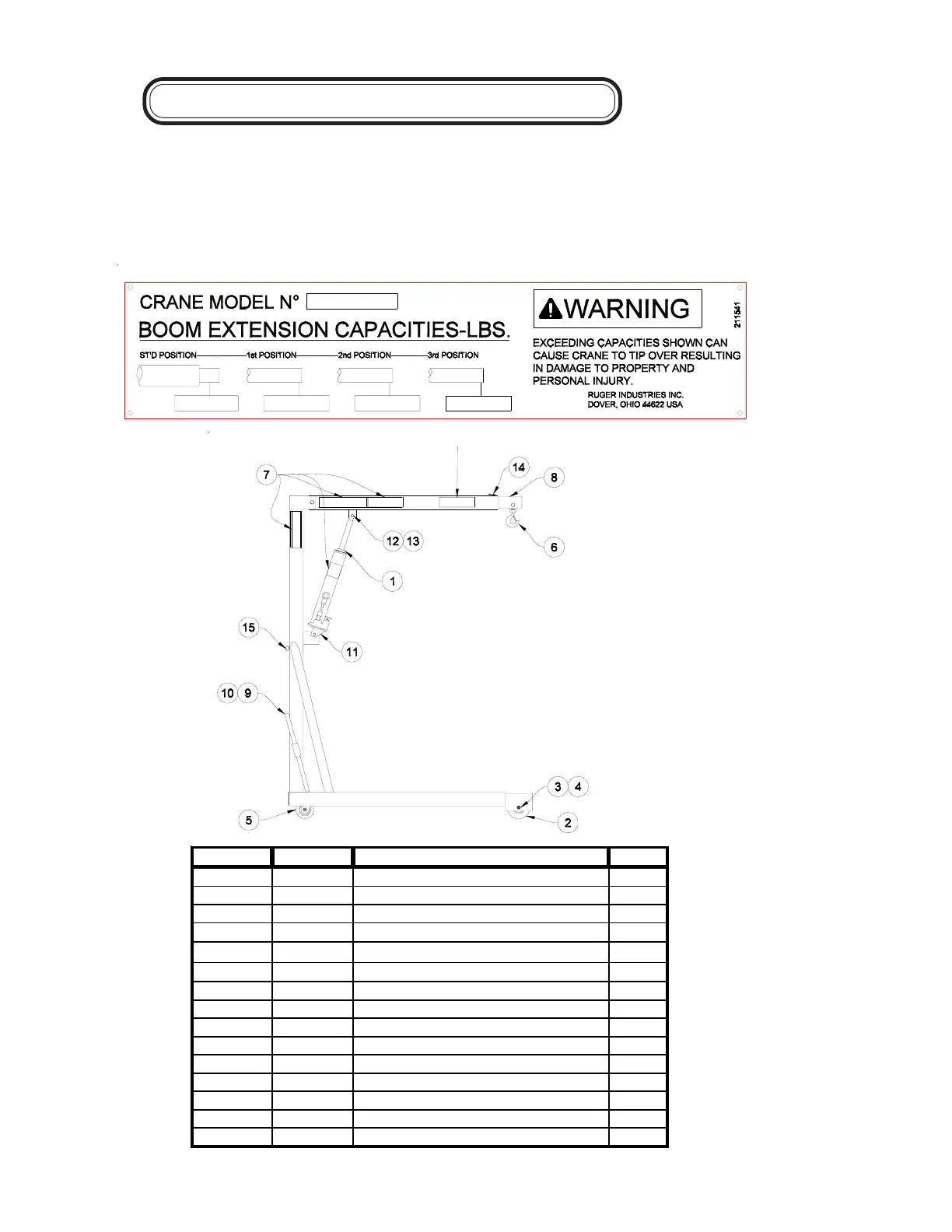 Capacity Tag - Found on boom of crane