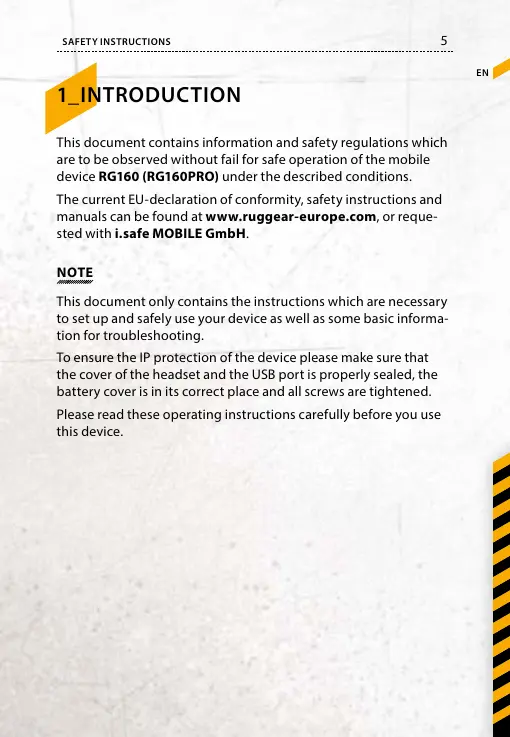 manuals can be found at www.ruggear-europe.com, or reque-