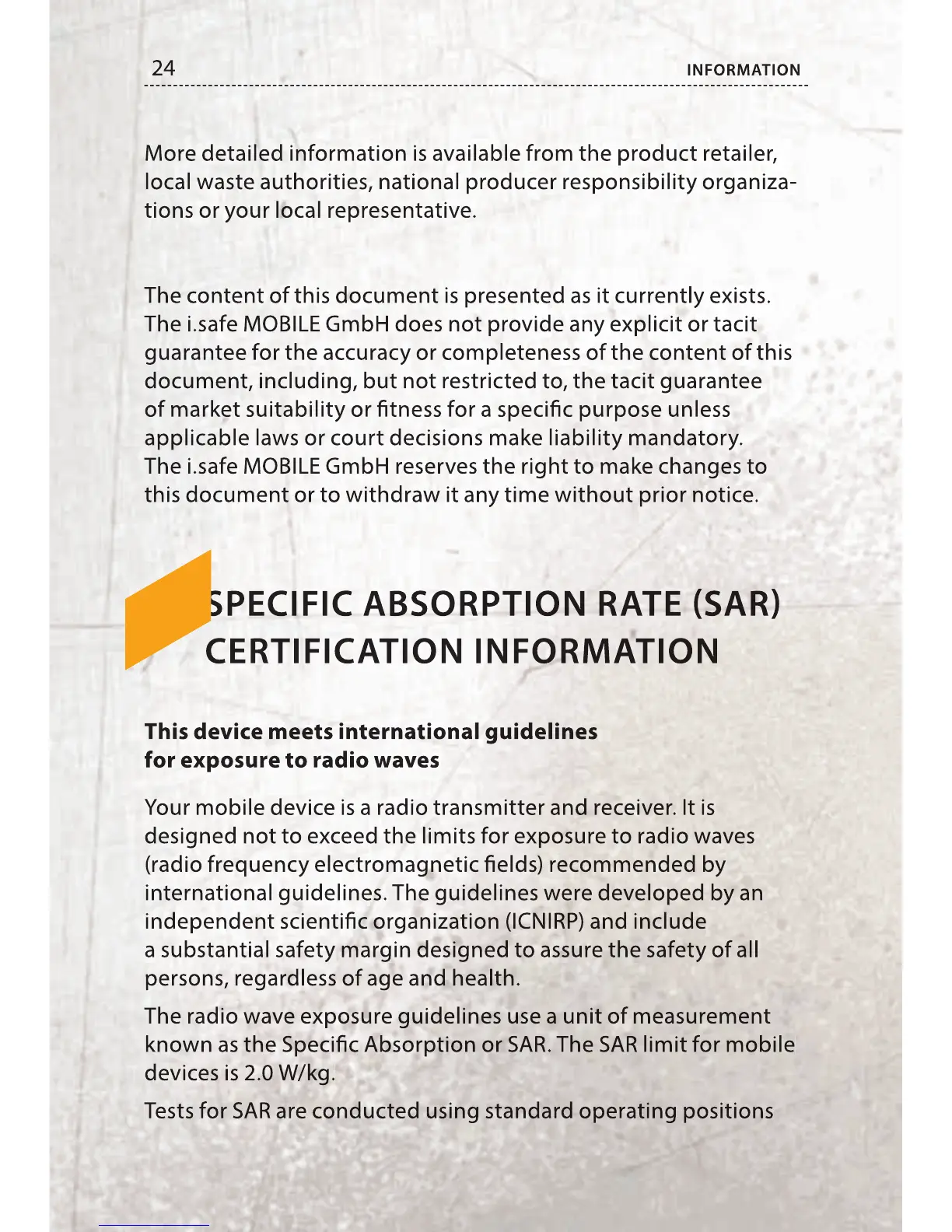 The i.safe MOBILE GmbH does not provide any explicit or tacit
