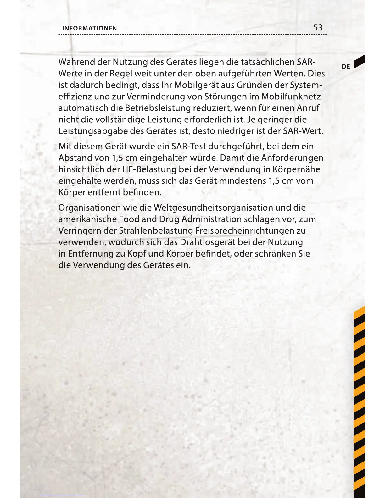 Während der Nutzung des Gerätes liegen die tatsächlichen SAR-