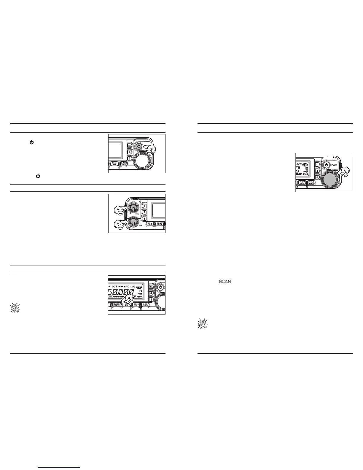 1. To turn the transceiver on, press and hold in the