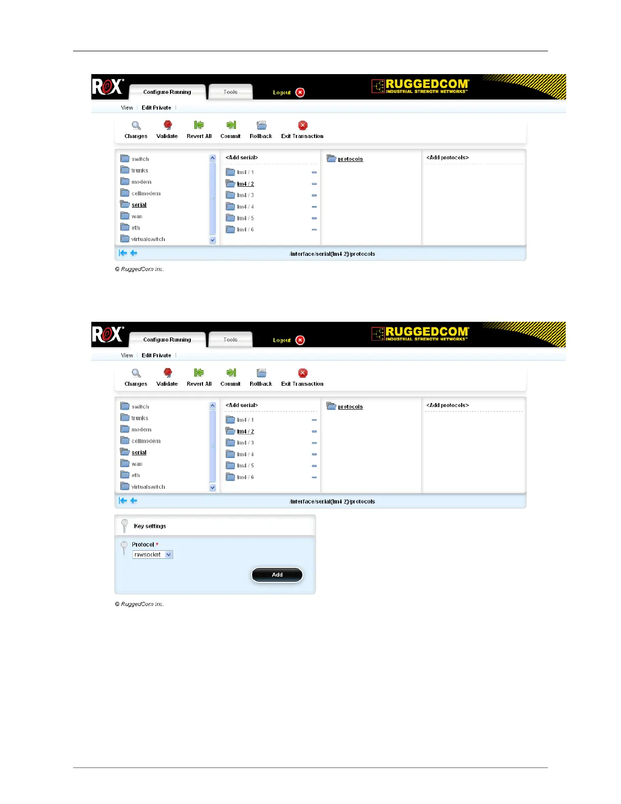 a serial port. Rawsocket, TcpModbus or DNP protocols can be selected. Unused ports should be