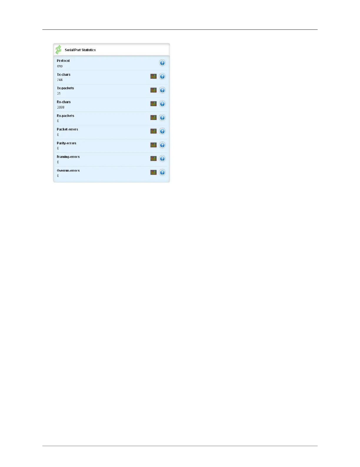 To display the Serial Port Statistics form, navigate to interfaces/serial/port and then clicking on a linked