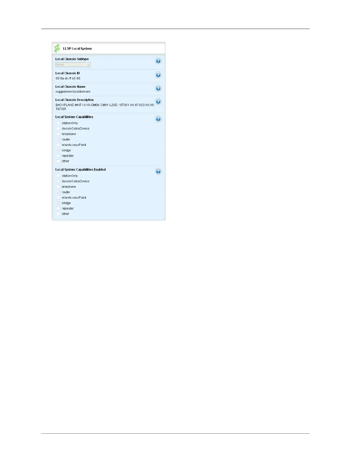 The LLDP local system form provides access to the local host’s information that is being set to remote