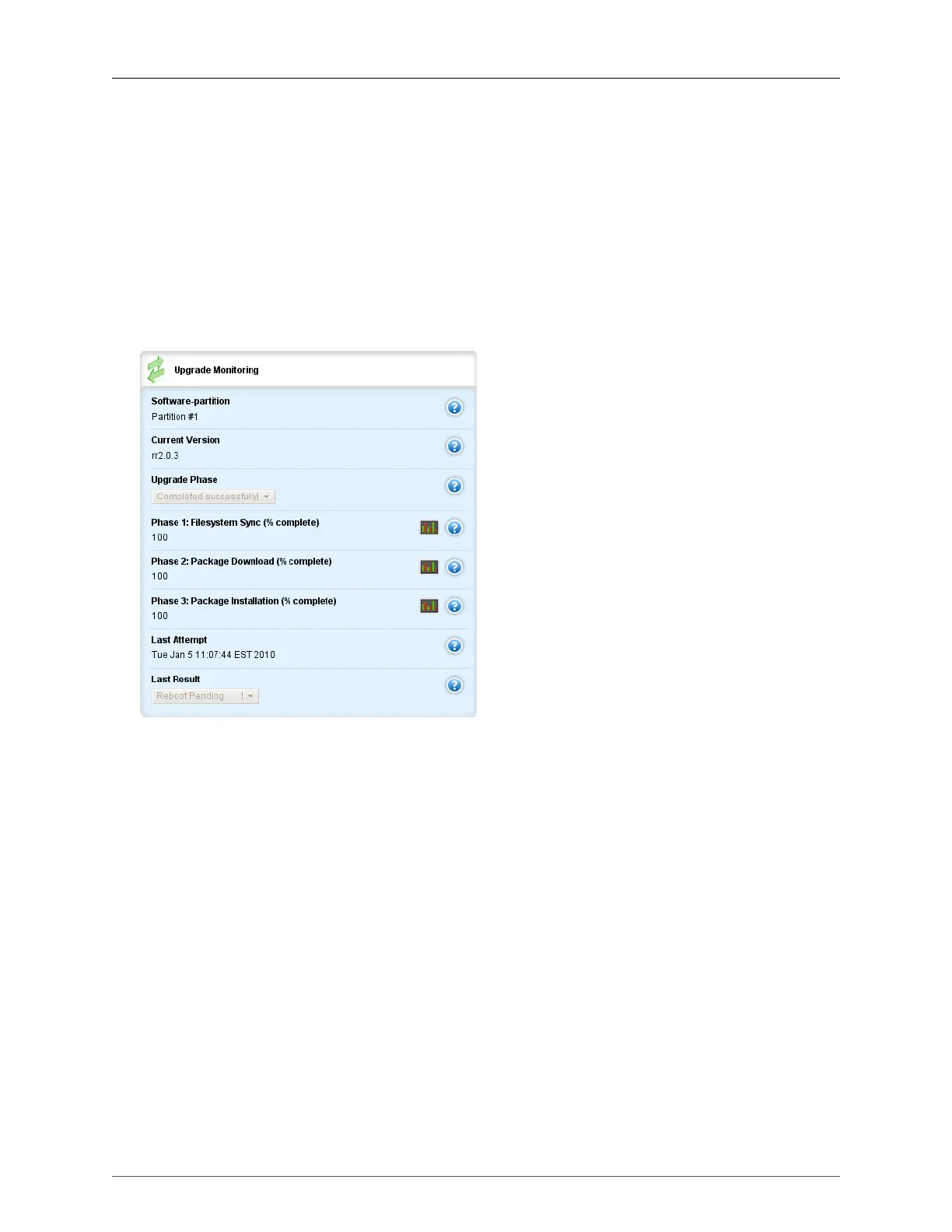 field. This indicates that a system reboot is required in order for the newly installed software upgrade