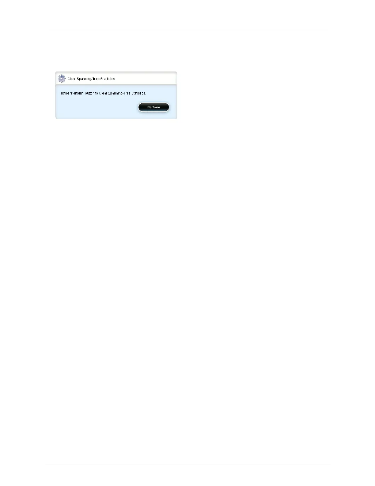 clear-stp-stats. To clear statistics, click the Perform button on the Clear Spanning-Tree Statistics form.