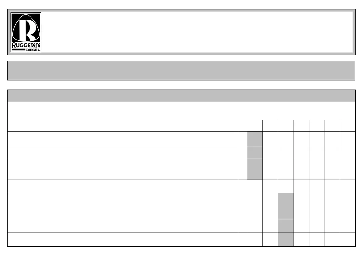 Indice riassuntivo delle operazioni di prima manutenzione.