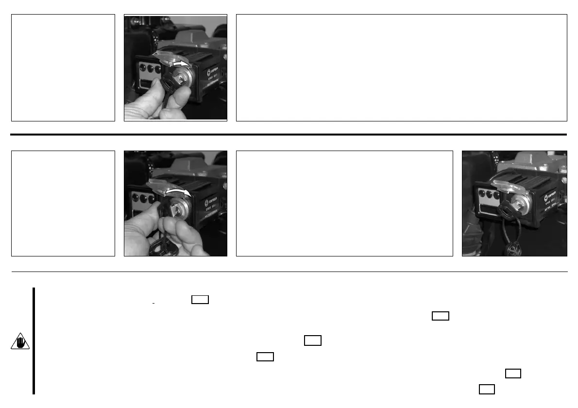 - Sicherstellen, daß bei laufendem Motor keine Kontrolleuchten mehr aufleuchten. Bei Motoren, die mit einem Schaltkasten mit Motorschutz ausgestattet sind,