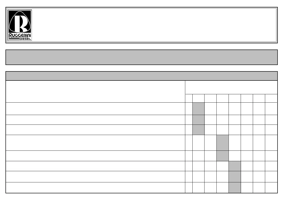 Indice riassuntivo delle operazioni di prima manutenzione.